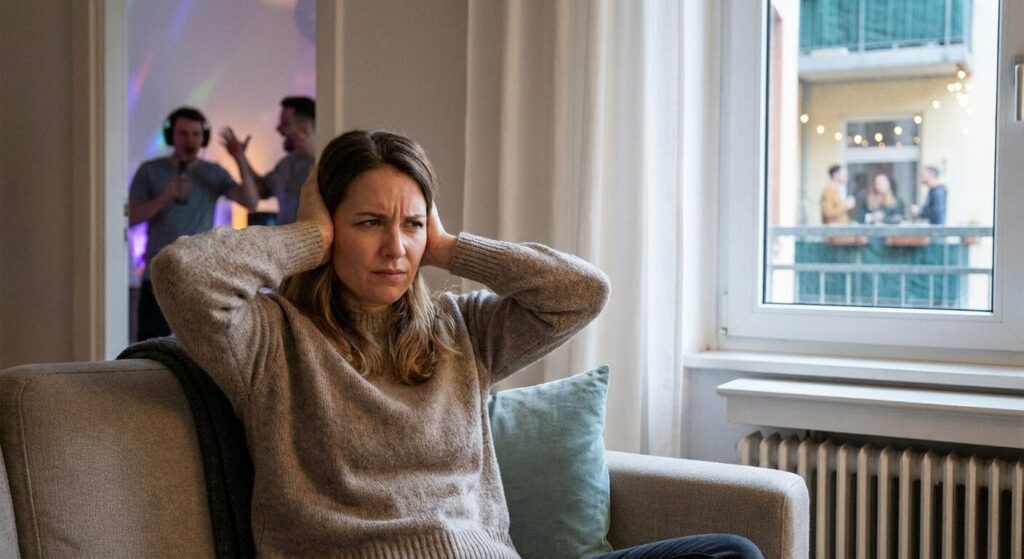 - 隣の部屋のテレビの音が聞こえる