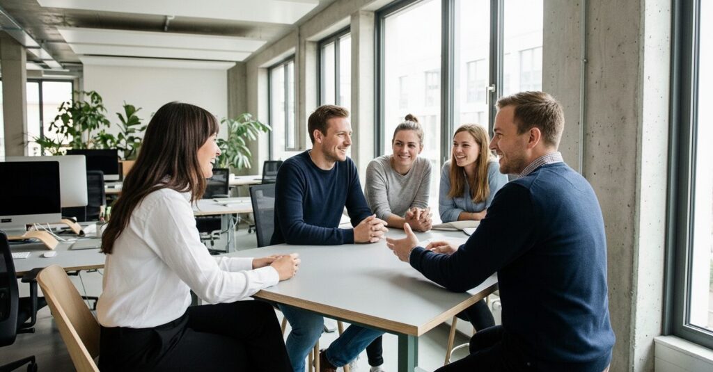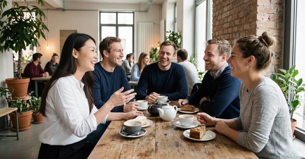 • 6-12ヶ月:同僚と簡単な雑談ができるように