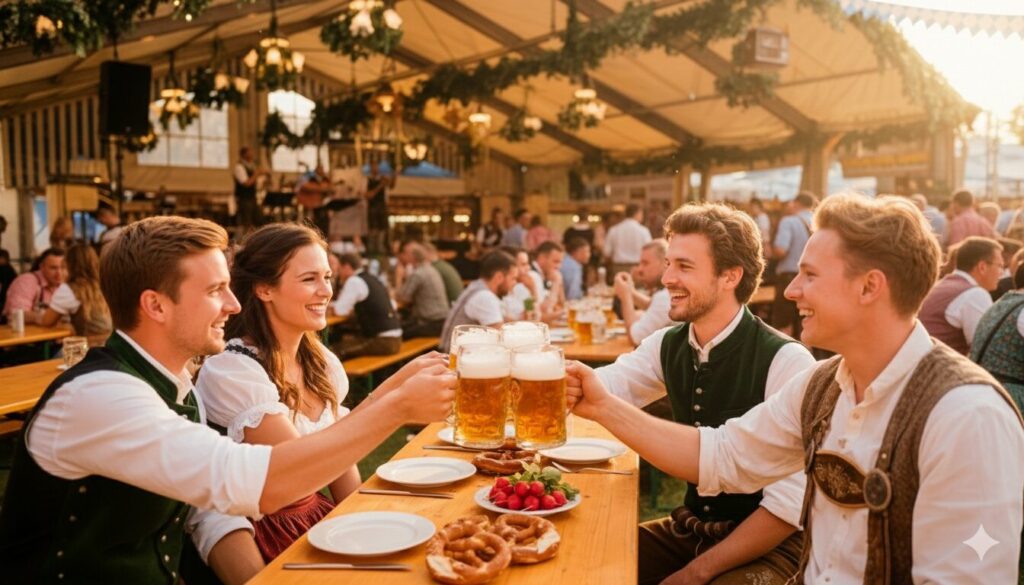 オクトーバーフェストは「ビールを飲む場」以上に「文化と交流を楽しむ場」です。民族衣装を着て乾杯し、音楽に合わせて踊って、ライトアップされた遊園地を散歩する。そんな非日常が待っています。