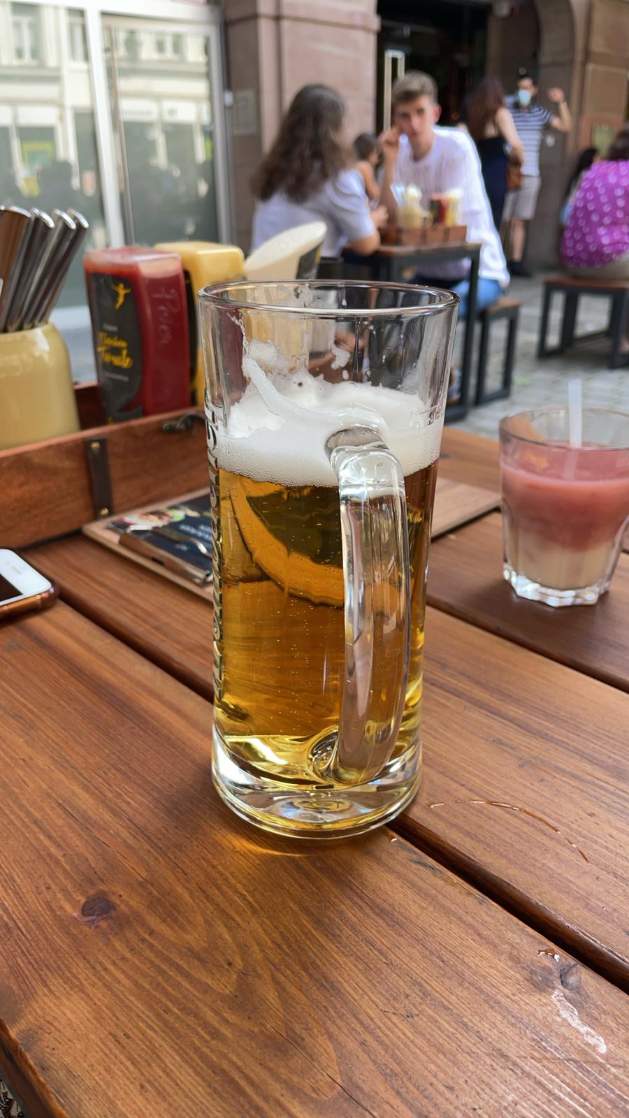 第一印象は「苦い!」。日本のビールに慣れていた私には、ホップの苦味が想像以上に強く感じられました。最初の一口で顔をしかめてしまい、「ドイツビールって苦いんだな」と思ったものです。
