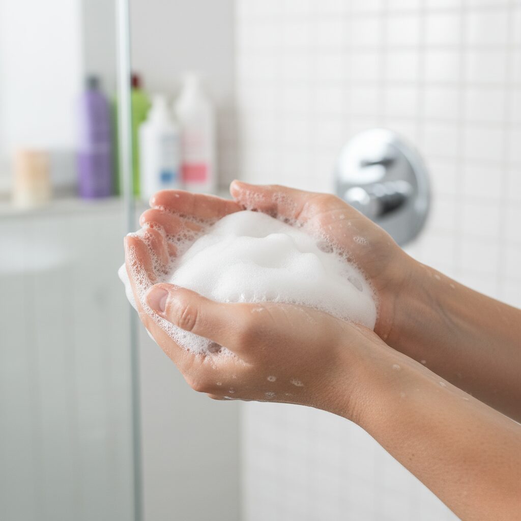 ぬるめのお湯で時間をかけてしっかり流すことで、ミネラルの残留を防ぎ、髪の軽さが戻ります。シャワー後は頭皮まで指の腹で優しくマッサージしながら流すのがおすすめ。