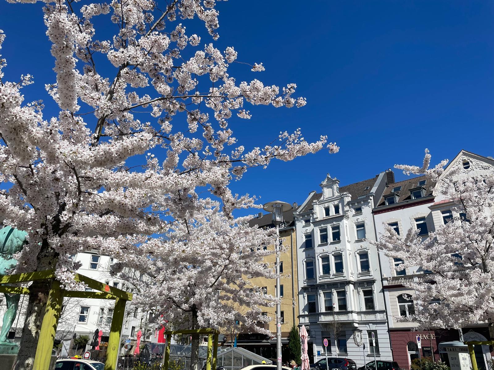 私が訪れた2023年4月は、まさに桜の見頃でした。デュッセルドルフでは4月3日、ボンでは4月16日に満開の桜を見ることができました。
