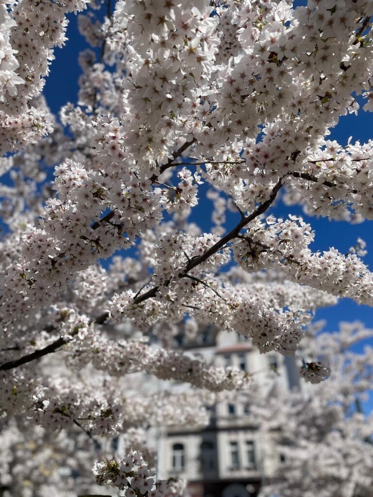 「ドイツで桜が見られるの?」と驚く人も多いけれど、実は春になると各地で美しい桜が咲き誇ります。私も実際にデュッセルドルフとボンで桜を見て、その美しさに感動しました。